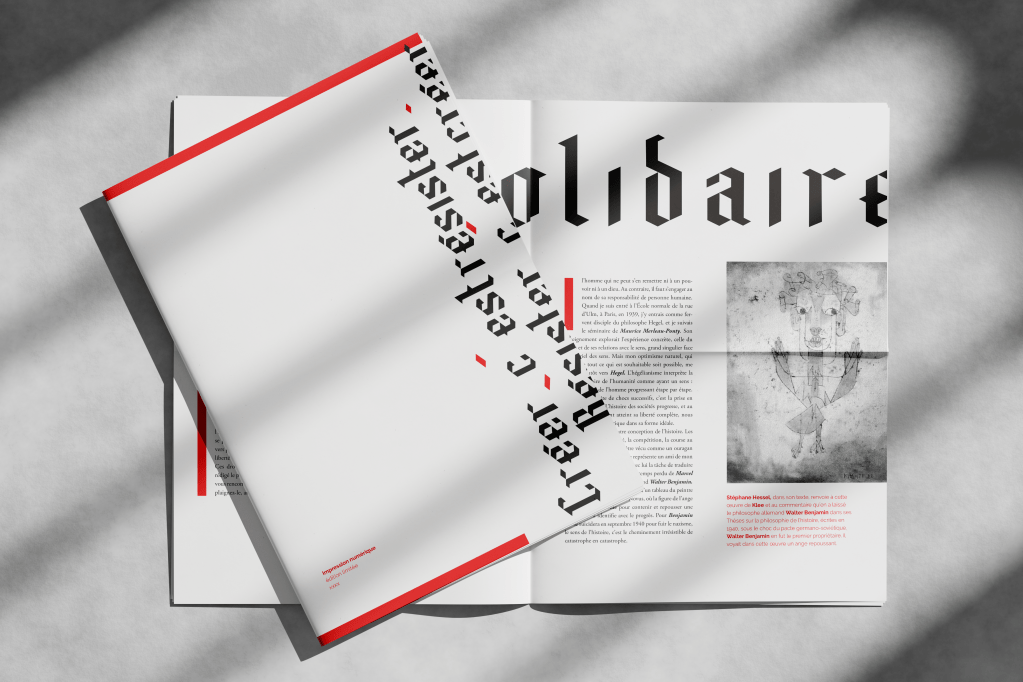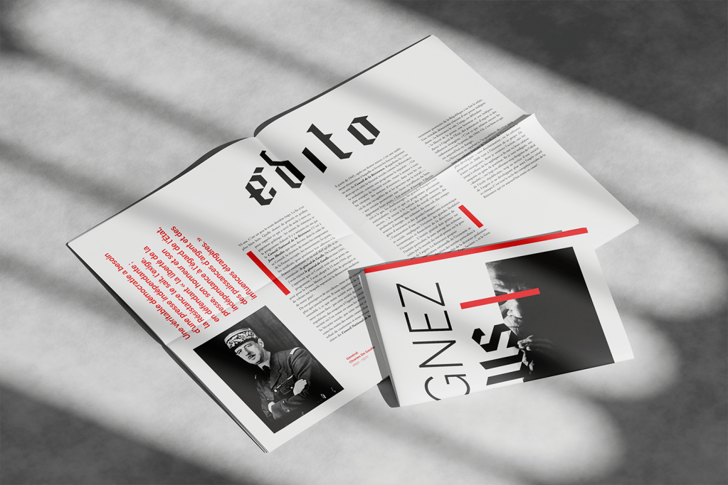 Le concept : mêler la contemporanéité de l’écrit au graphisme des premières impressions parues au Moyen Âge, une époque qui a vu naître les pamphlets et autres brochures révolutionnaires.